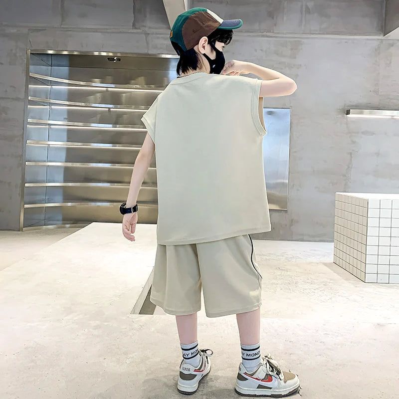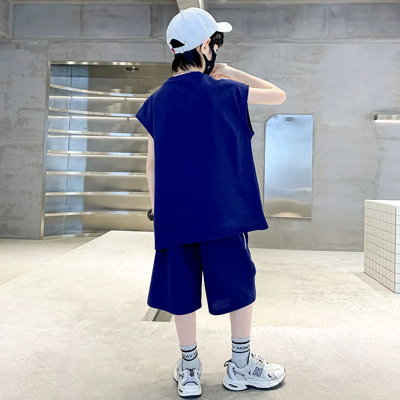 This two-piece ensemble features a casual short-sleeve t-shirt paired with matching shorts, creating a coordinated tracksuit that's perfect for warm weather activities.