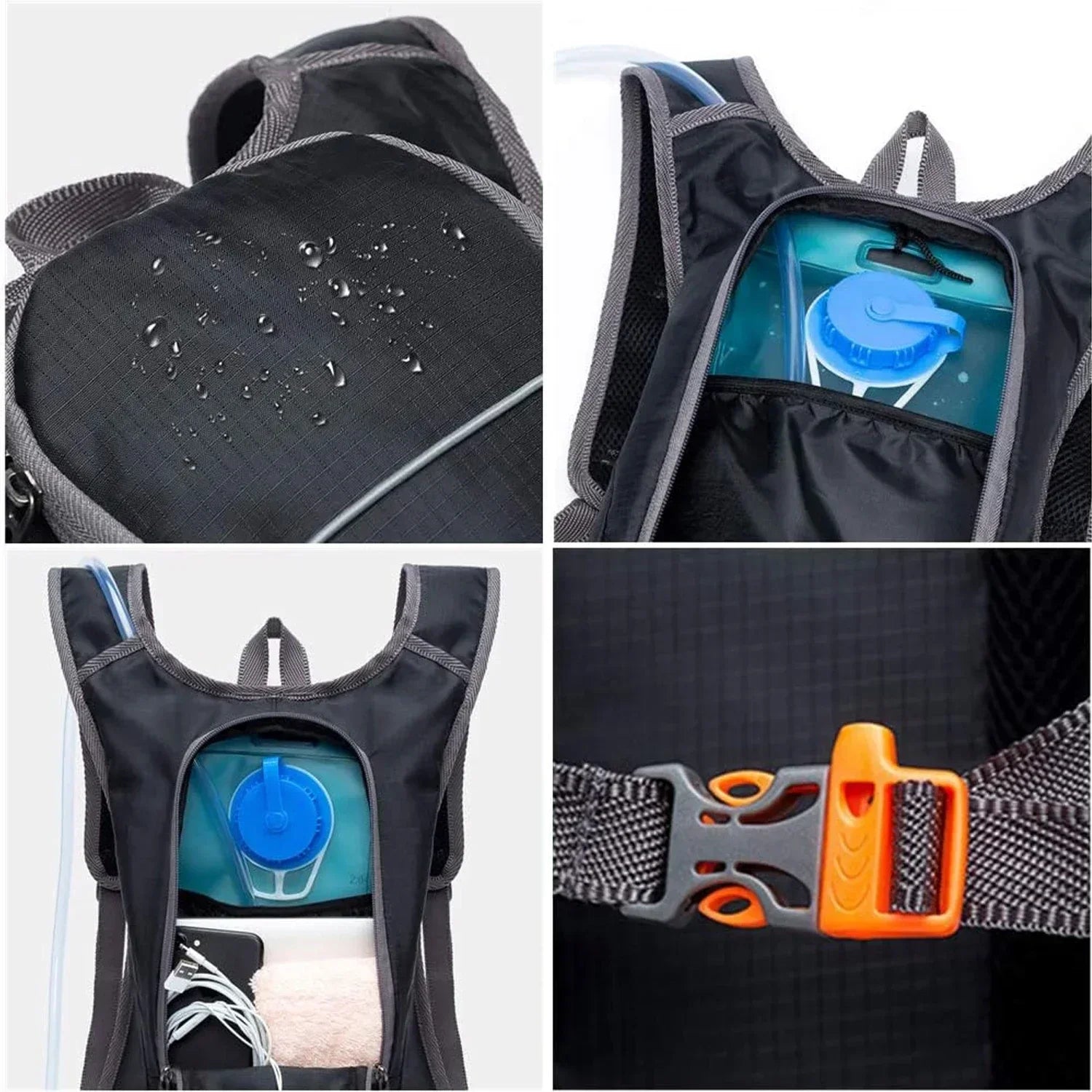 The integrated water bag ensures hydration during intense activities, while waterproof and wear-resistant materials protect your essentials in challenging conditions.