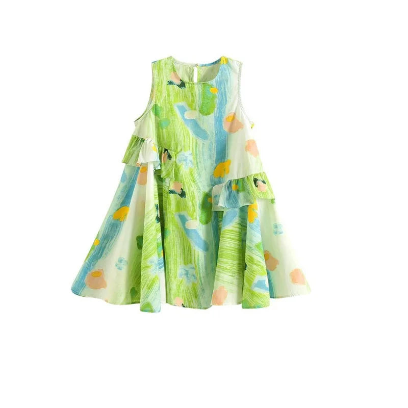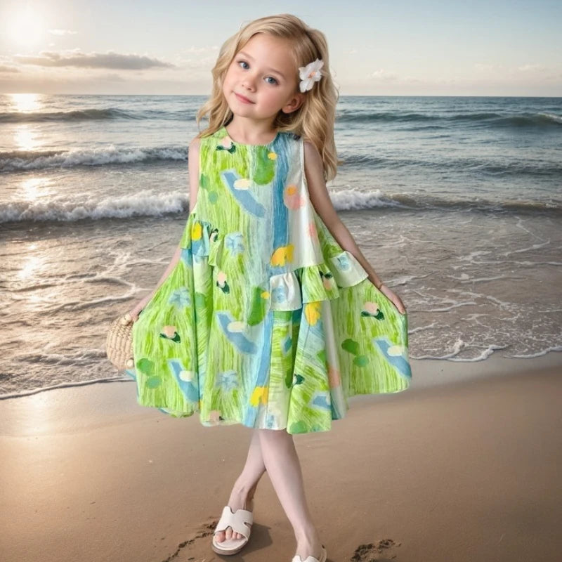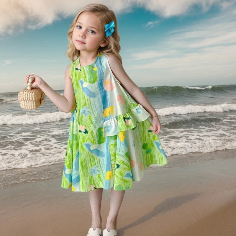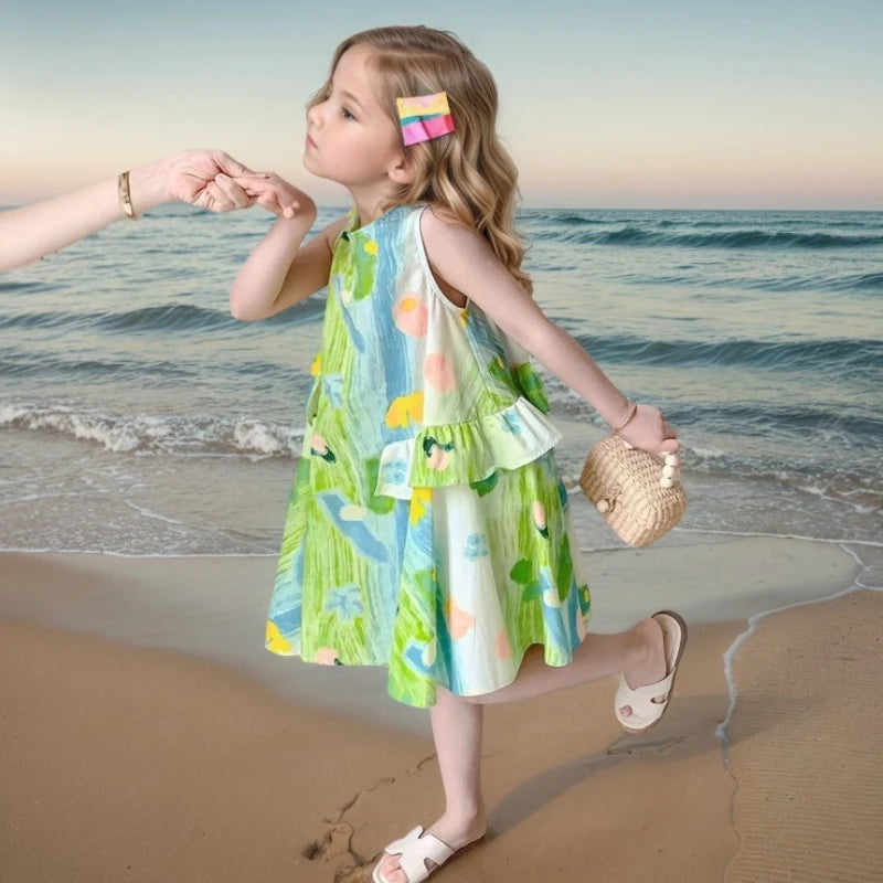 Summer Children's Beach Vacation Dresses Sundress Baby Girls Sleeveless Casual Dress Fashion Printed Kids Outdoor Clothes Gifts
