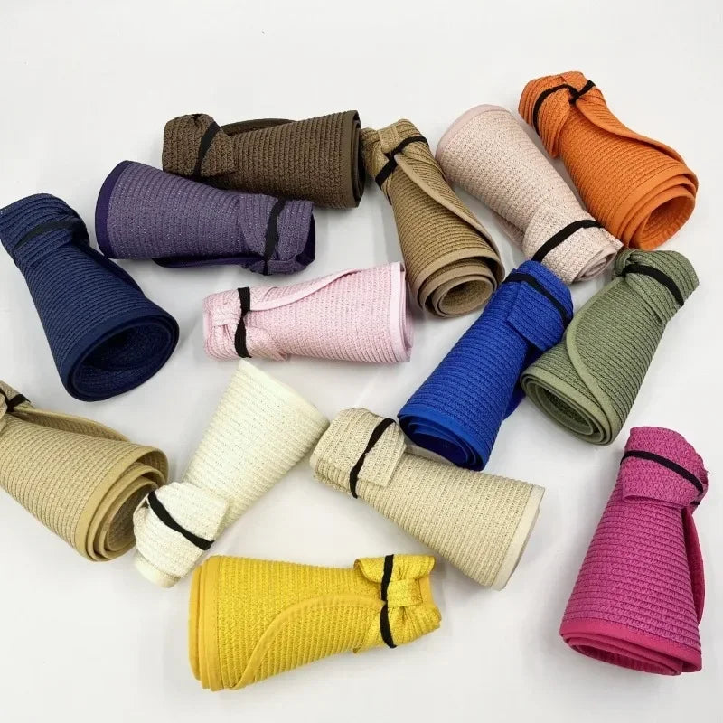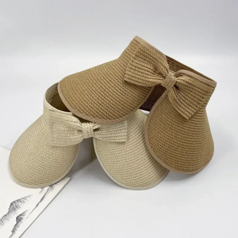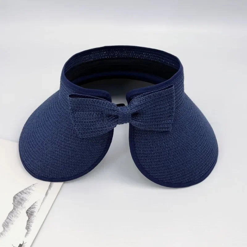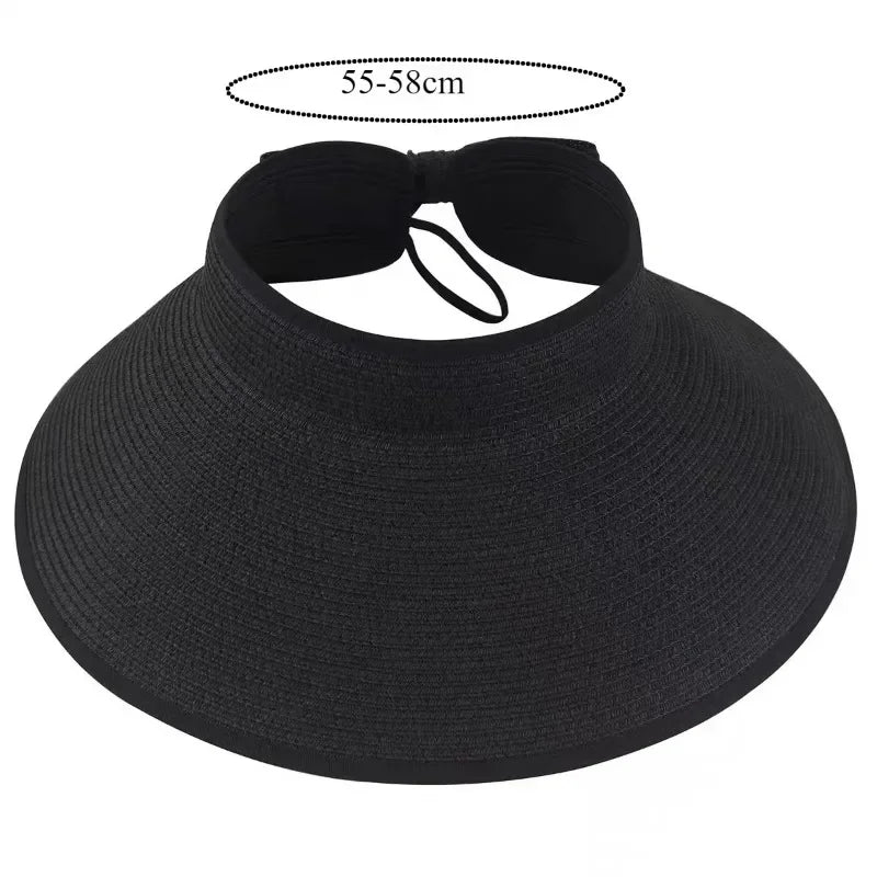 Summer Empty Straw Hat for Women Foldable Outdoor Portable Bow Wide Brimmed Sun Protection Beach Hat Breathable Caps Straw Hat