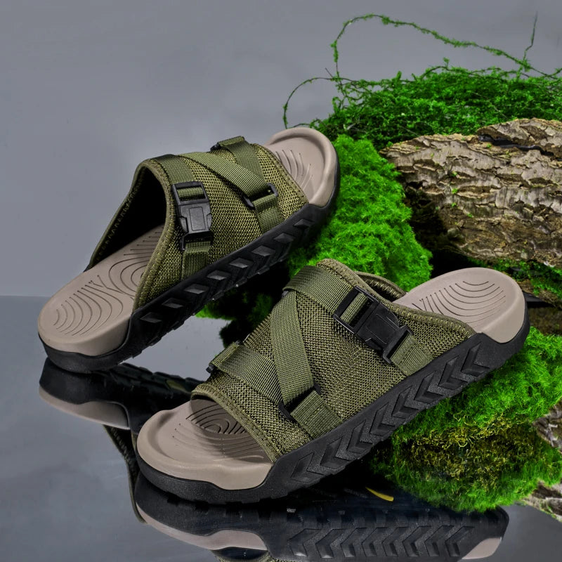 Summer Men Adjustable Outdoor Slippers Men Slides Anti Slip Slippers Black Khaki Green Comfortable Size 39-45 Men Slippers